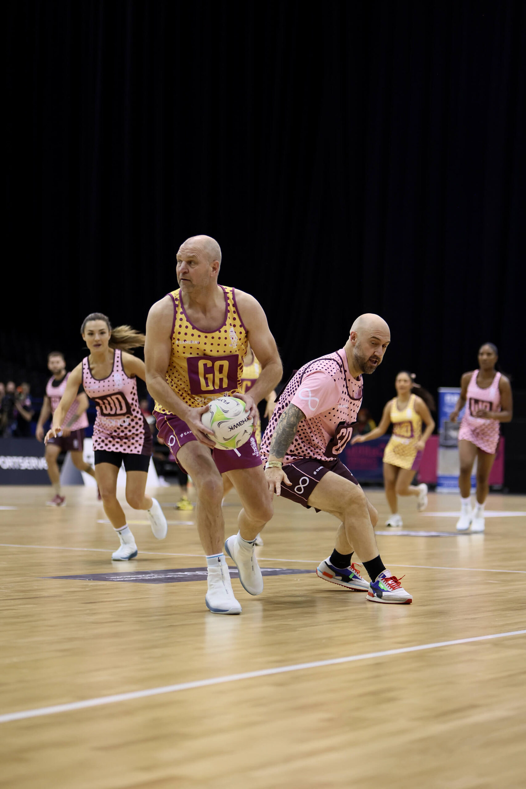 There then followed an England Men’s Netball Display match where the U23’s triumphed over the Men’s Team and then the celebrity main spectacle!